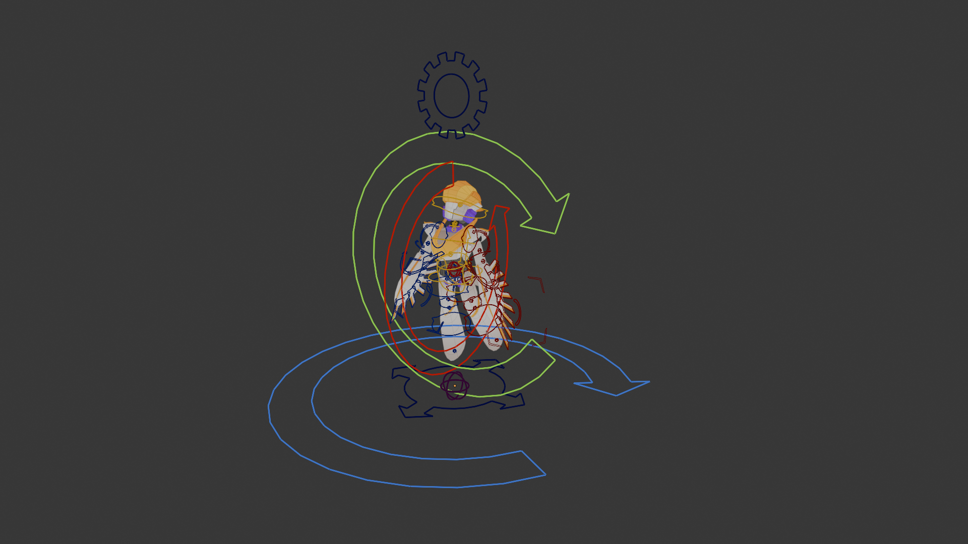 Each character shares the same base rig, allowing for shared movement animations. To handle specified rotations, each rig uses 3 additional control bones.